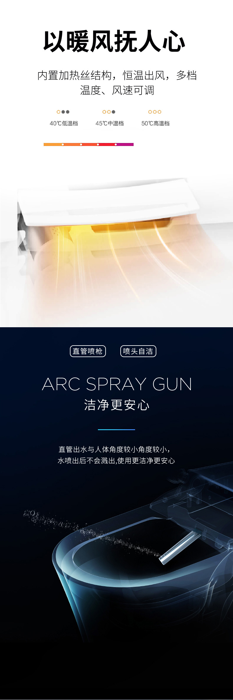 4、溫水潔身、暖風(fēng)烘干、